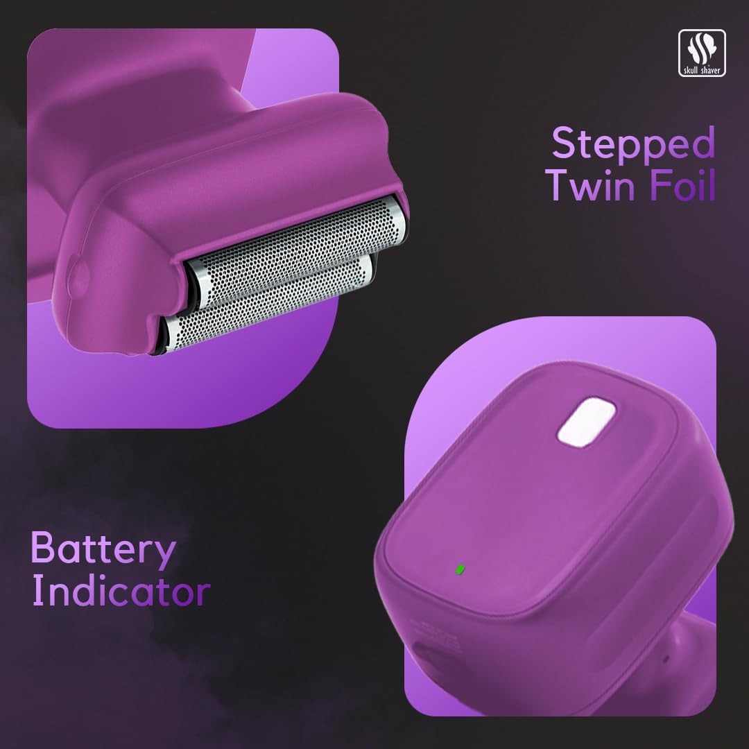 Skull Shaver One Lion Purple PRO Shaver for Women - Flawless Hair Removal - Stepped Twin Foil Blades - Wet or Dry Shaving - Rechargeable - Cordless